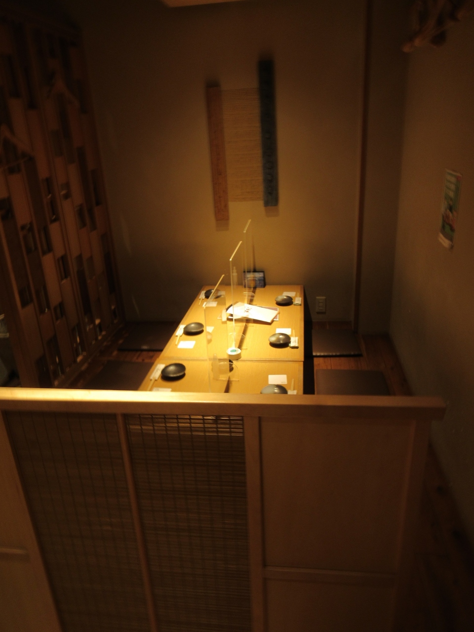 4名の会食コースで利用して、掘りごたつタイプの4人席でした。