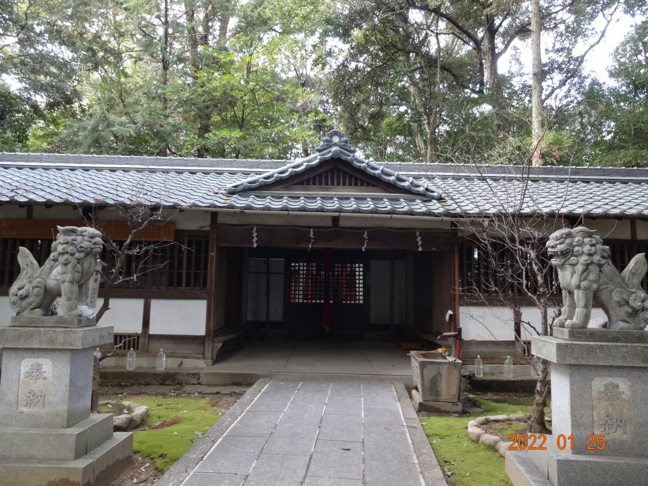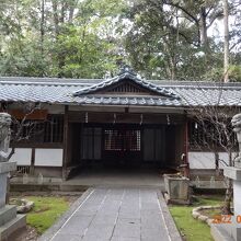 墨の資料館の前の通りを左に行ったところに、天満宮の入口(?)がありました。入口というよりは、裏道で、本来の参道とは違います。境内は犬の散歩禁止という表示がありました。本来の参道は本殿の東にある近鉄橿原線の線路の方向に延びていました。