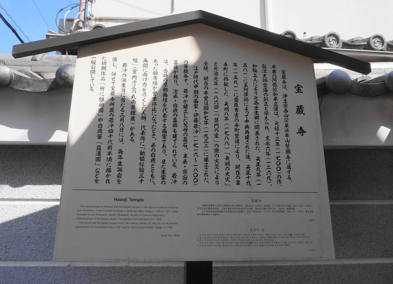 宝蔵寺さんは伊藤若冲ゆかりの寺院、錦小路で青物問屋「桝屋」を営む伊藤家の菩提寺です。