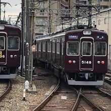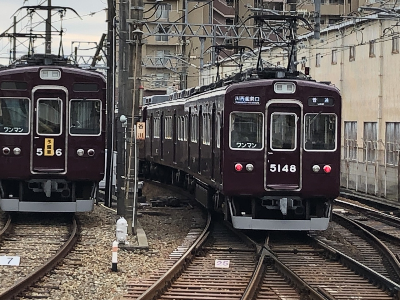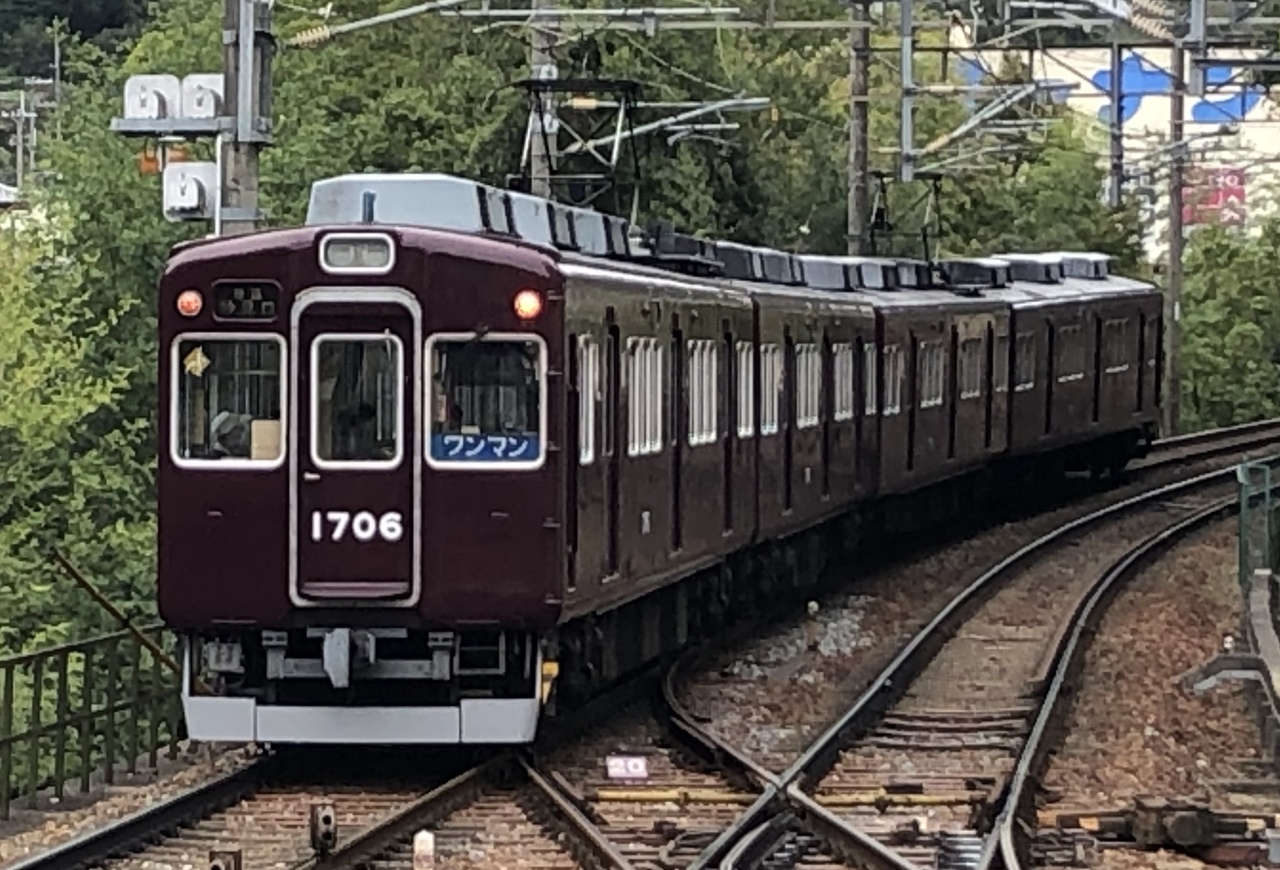 現在所有する車両は、全て阪急電鉄からの譲渡車両で、一番古い車両は1960年代に製造された元阪急2000系を車種とする1700系で、1990年から92年にかけて導入。既に車歴は60年を超えていますが、阪急電車の雰囲気と同じせいか程よい古さを感じる程度。1970年代製造され、2014年に譲渡された、最近の阪急顔の元阪急5100系を種車とする5100系が主力。また、最新の車両は2018年、19年、21年に営業運転を開始した7200系。元阪急の6000系と7000系を種車とする車両で、マルーンとアイボリーのカラーの間に金色のラインが入った。能勢電初のVVVFインバーター車であり、乗り心地も良い。この他、阪急電鉄から2014年に譲渡された6000系(6002F編成)を有しており、「日生エクスプレス」限定運用に就いています。能勢電鉄に入るのは、平日の同運用のみで、通常は宝塚線で運用。車両使用料の相殺のために譲渡されたもので、ドア横の社章が能勢電鉄のものに貼り換えられたほかは阪急時代と変わりません。