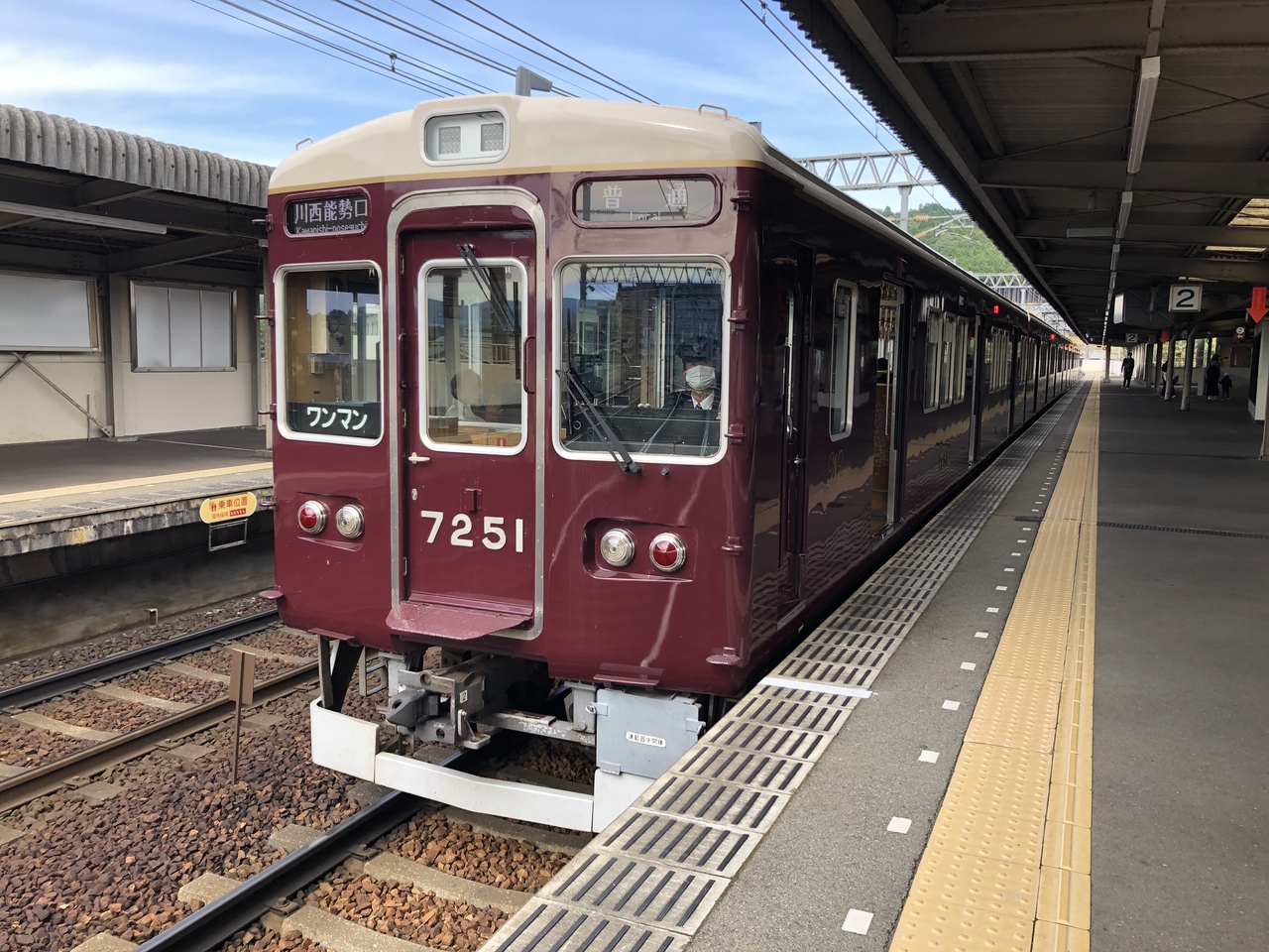 兵庫県川西市の阪急宝塚線川西能勢口駅をから大阪府豊能郡豊能町の妙見口駅までの14駅12.2kmを結ぶローカル線。能勢電鉄は、阪急電鉄の子会社であり、川西能勢口駅は阪急宝塚線と共用、平日には梅田と日生中央を結ぶ直通特急(日生エクスプレス)が運転され、さらには阪急で走っていた車両を、阪急と同じデザイン(マルーン)で使用されていることから、一見、阪急の支線のようにも見えますが、会社設立は阪急電鉄の前身である箕面有馬電気軌道よりも歴史があるなど複雑て、設立時は全くの別会社。もともとは関西で最も有名な日蓮宗寺院の一つ能勢妙見宮への参詣者と能勢地方の産物の輸送を目的に設立された鉄道路線。当初は現在のJR宝塚線である阪鶴鉄道の池田駅を始発駅とする構想だったが、難色を示されたことから川西に変更。箕面有馬電気軌道との直通を考慮し、レールの幅を1435㎜にしたという歴史を持っています。1884年に「平野水」の名前で販売された現在の三ツ矢サイダーの輸送を行っていた時期があり、1981年までは川西能勢口から川西池田駅(川西国鉄前駅)まで乗り入れていました。また、1960年代には、沿線に大規模ニュータウン建設を計画した西武鉄道が買収を画策し、慌てて増資し阪急が買い取ったといった歴史も有しています。