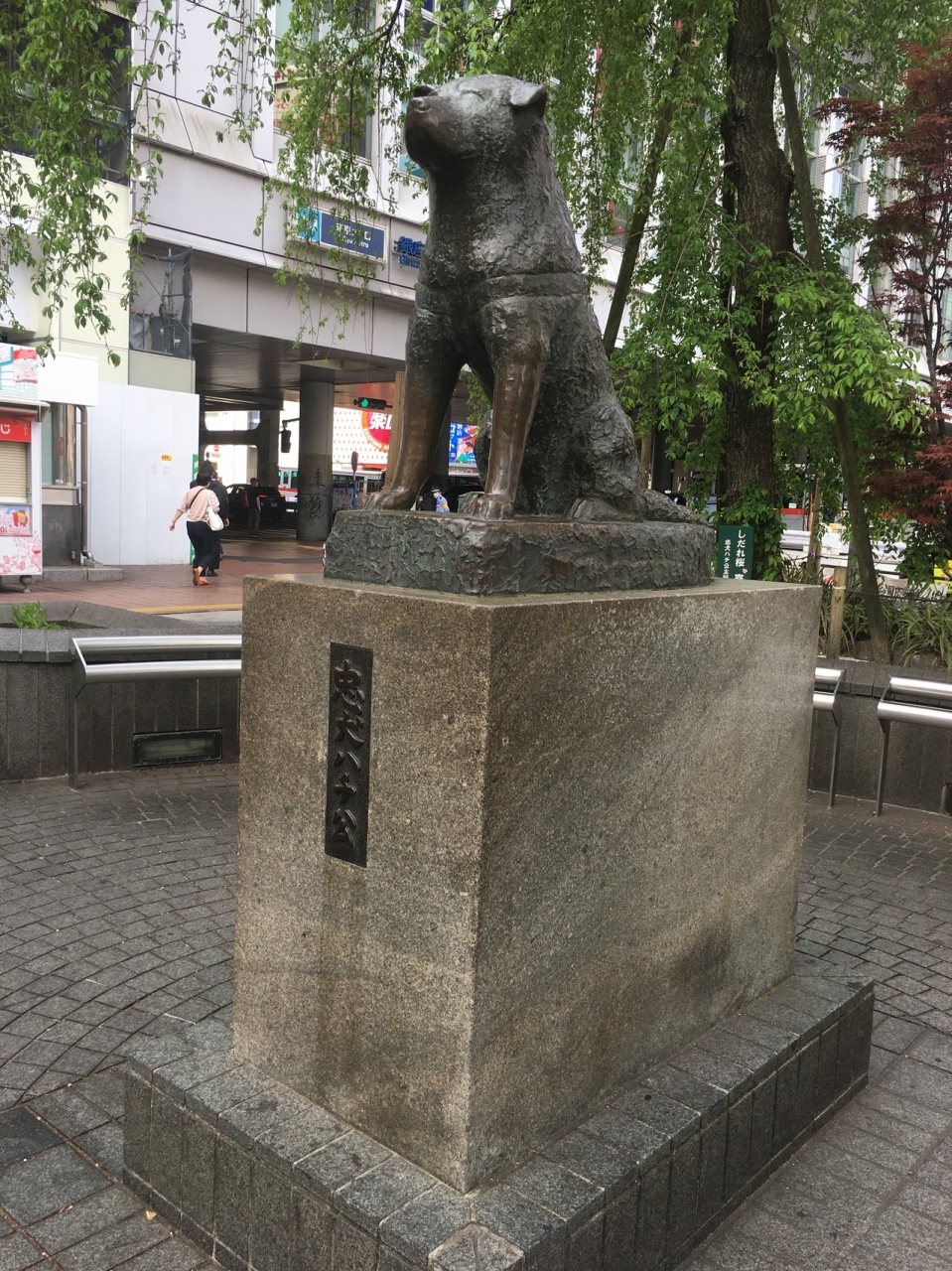台座に乗った乾の像で、少し上を見上げて誰かを待っているような雰囲気でした。半円形のような囲みがあり、寄りかかるところもあるため待ち合わせの人が多かったですが、写真だけ撮って帰る人も幾人か見かけました。JR渋谷駅です。