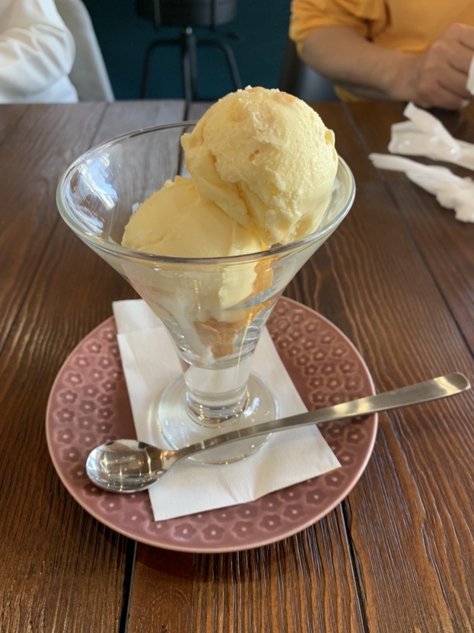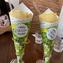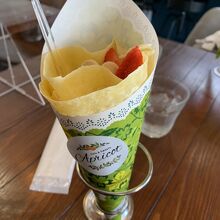 百合丘駅南口のバス通りを南へ7分ほど歩いたところにある店です。2021年10月にオープンした小さな店で、11~14時はランチ、以降はカフェになります。休日近くの公園で孫と遊んだ帰り、14時半ごろ利用しました。手作りケーキ、アイスクリーム、クレープ、ドリンクがあります。店内で読書をしながらクレープセットを楽しんでいる人がいました。キャラメルとバニラのアイスクリーム、ストロベリーチョコ生クリームクレープ、ストロベリーバナナWクリームにバニラアイスクリームトッピング、バナナWクリームにバニラアイスクリームトッピングを注文しました。クレープ生地は程よい厚みともちもちしていてこだわりの生地を感じました。生クリームとカスタードクリームのWクリームも美味しく、テーブル席に座ってゆっくり10年ぶりのクレープを楽しみました。クレープをテイクアウトする人が来ていました。地元に浸透しつつある店のようです。