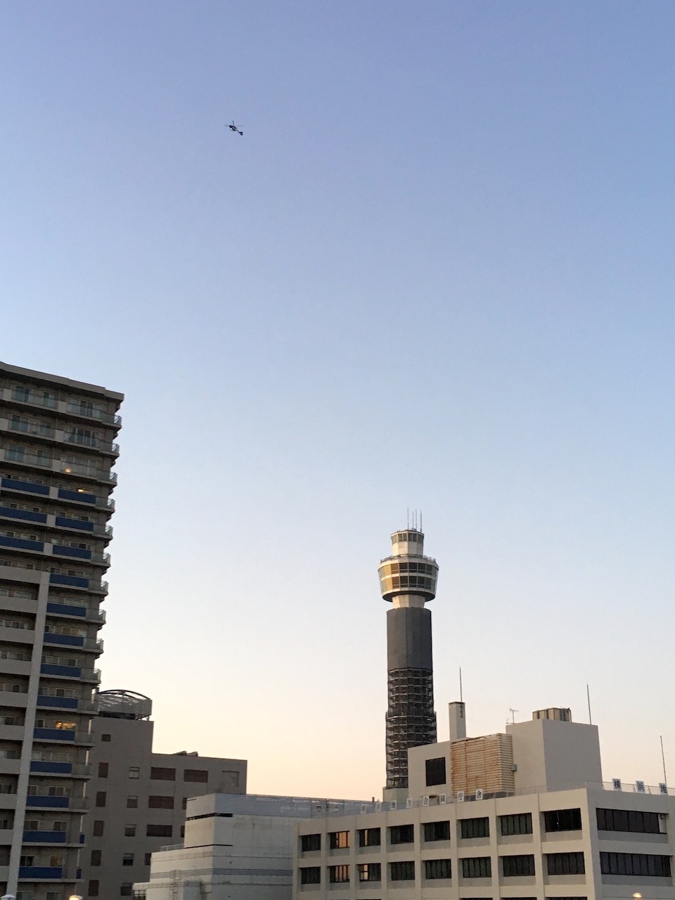 みなとみらい線の元町・中華街駅の上に公園があり、園内からマリンタワーが見えます。