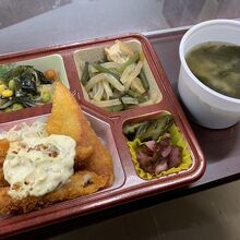 酒田の中心部を少し外れた場所にある弁当屋です。お昼の弁当を買いに行きました。ご飯のつかない日替わりのおかずが310円。内容はミックスフライに酢の物など。ご飯を食べなくていいのは、糖質制限中の僕には嬉しいです。ランチタイムは味噌汁がサービスでついてくるので、これで充分でした。