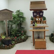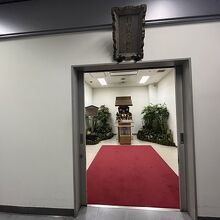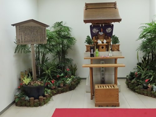 羽田空港第一ターミナル。出発は2階。到着は1階。到着するとすぐ地下に降りて京急で都内に出ます。いままで何十回利用している空港ですが、今回、その動線上に存在しない施設はまったく知らないことが判明しました。第一ターミナル1階に神社があります。2階から5階まで展開されているマーケットプレイスの下にあたるそうで、行ってみました。ざっと見渡すだけでは場所がわかりません。細い通路を奥へ進みます。この入り口に気づかないとたどり着きません。意図して「知る人ぞ知る」パワースポットが演出されていました。