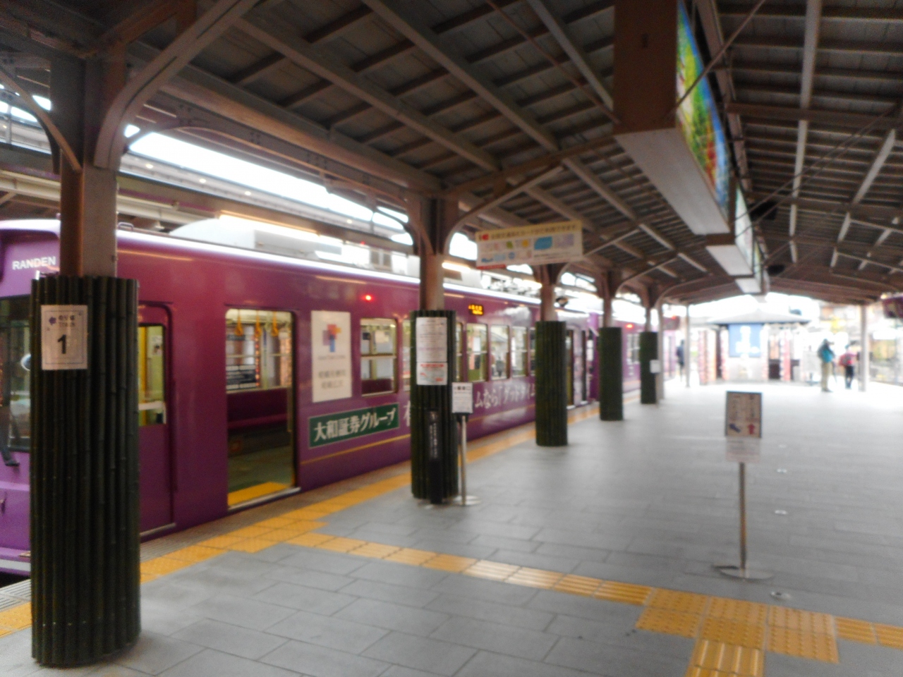 嵐山から四条大宮まで初めて乗車しました。嵐山まで市バスで来て、帰りは嵐電に乗車してみました。四条大宮まで¥220とは、安価で驚きました。紫色の嵐電に、嵐山から乗車する際、スタッフが親切に案内して下さって、しかも、車窓から望むある区間は、桜の並木を望めました。