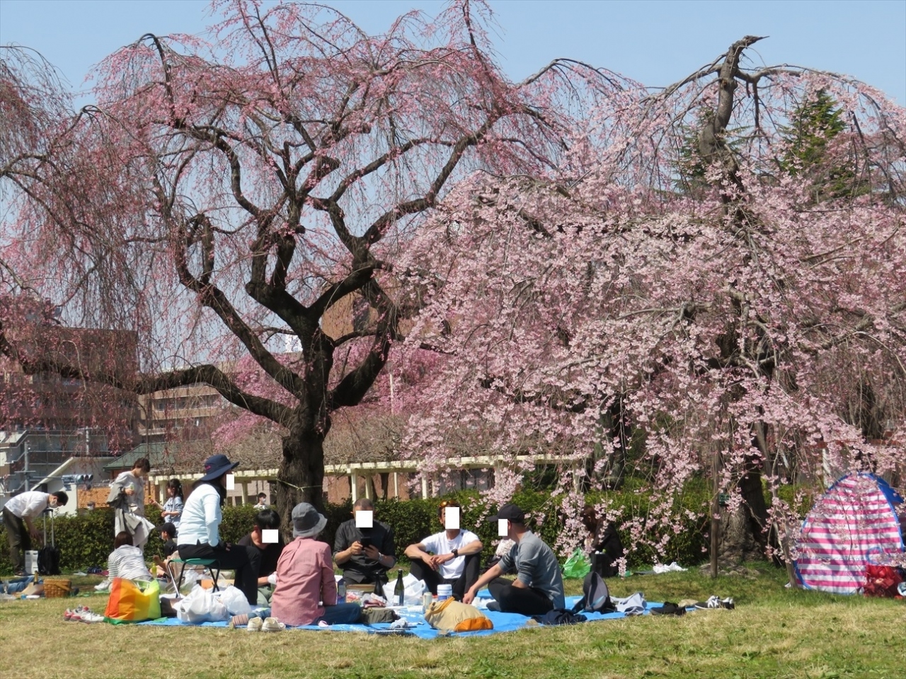 桜の開花を聞いて行った4月中旬の週末には、お天気も良くて訪れる人がたくさん!