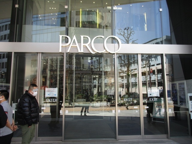 JR渋谷駅ハチ公口から渋谷駅前スクランブル交差点を渡りセンター街を進むと右手に急な坂で渋谷公園通りに抜ける渋谷スペイン坂の先にある渋谷パルコに歩いて5分ぐらいで着きました。渋谷パルコはリニューアルオープンで建物が綺麗です。1階はおしゃれなブランドショップで吹き抜けの通路で高級感がありました。ファッション店舗がメインですがカフェー、レストラン、任天堂ショップも揃ってます。トイレもピカピカで綺麗でした。