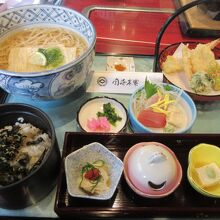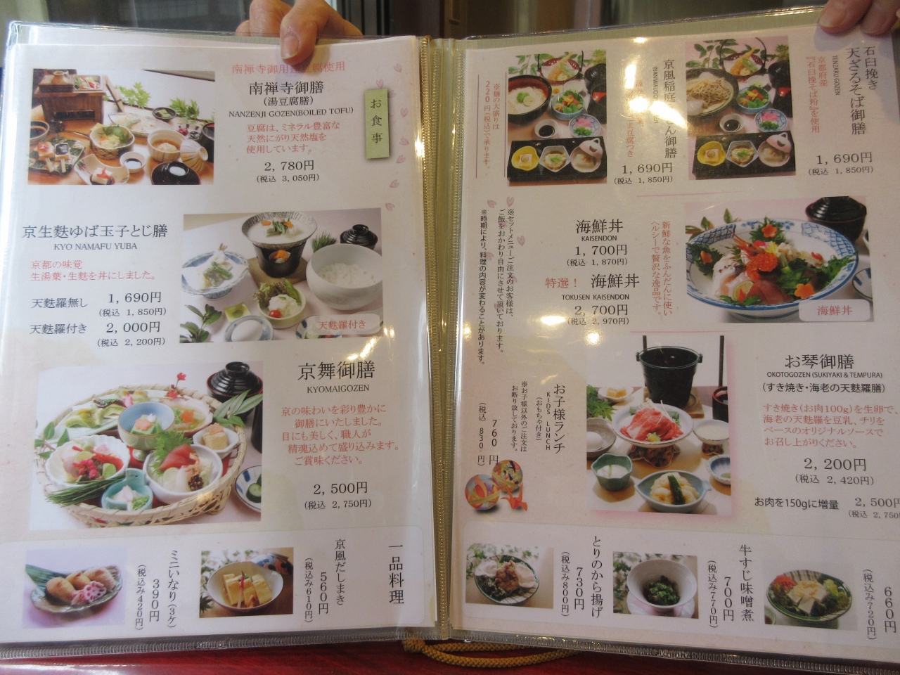 岡崎道と京都市動物園の南の琵琶湖疏水を渡った交差点にあります。休日観光してゆっくり昼食をとる店を探していた時に、開店したばかりの岡崎茶寮を見つけて入りました。生け簀が店内にある広い食事処です。御膳や会席料理などがあり、個室に法事料理の準備がされていました。座敷掘りごたつ席に通されました。京風稲庭うどん御膳と京生麩ゆば玉子とじ膳を注文しました。刺身、天ぷら、湯葉、稲庭うどん、ご飯などボリュームのある御膳はあっさりした稲庭うどんが気に入りました。生麩と湯葉好きの妻が頼んだ玉子とじ膳は、生麩と幅広い湯葉の鍋に溶き卵をかけてとじ、ご飯にのせて食べる料理でした。さっぱりとしていて雑炊のように汁も一緒にかけて食べました。観光で少し疲れていた体にしみる美味しさとゆっくり休めた昼食でした。