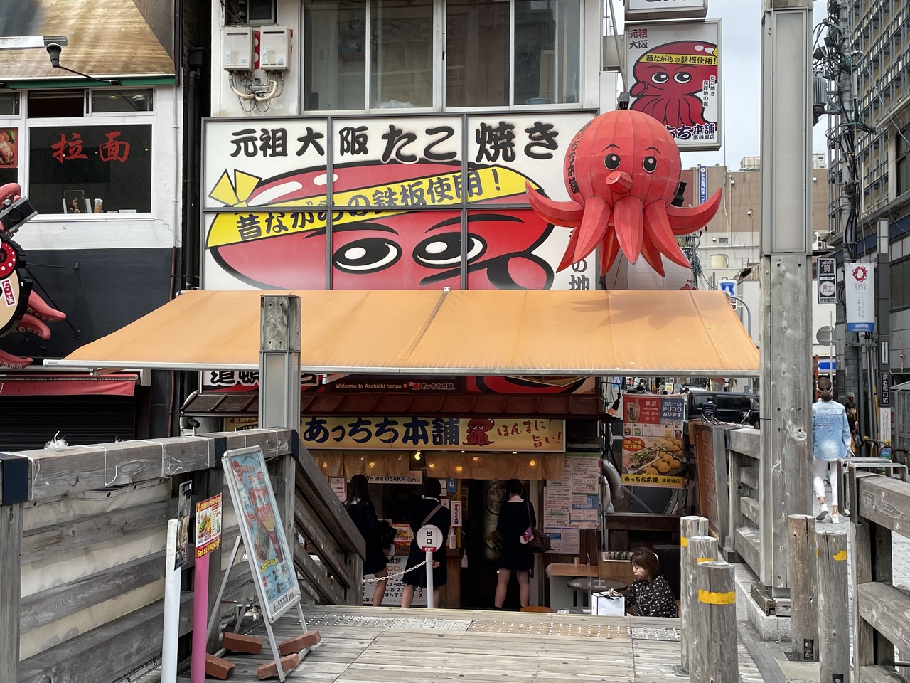 道頓堀川沿い、メインの通りからはちょっと離れたタコ焼きのお店です。「あっちち」の店名ではありましたが、アツアツではなく、逆に猫舌にとっては美味しく食べやすかったです。店キャラは「あっちち君」、西成が発祥のお店だそうです。