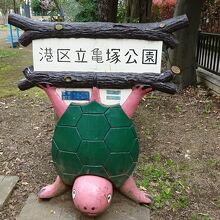 「亀塚」が有るので亀塚公園とのこと。入口では「亀」が迎えてくれます。