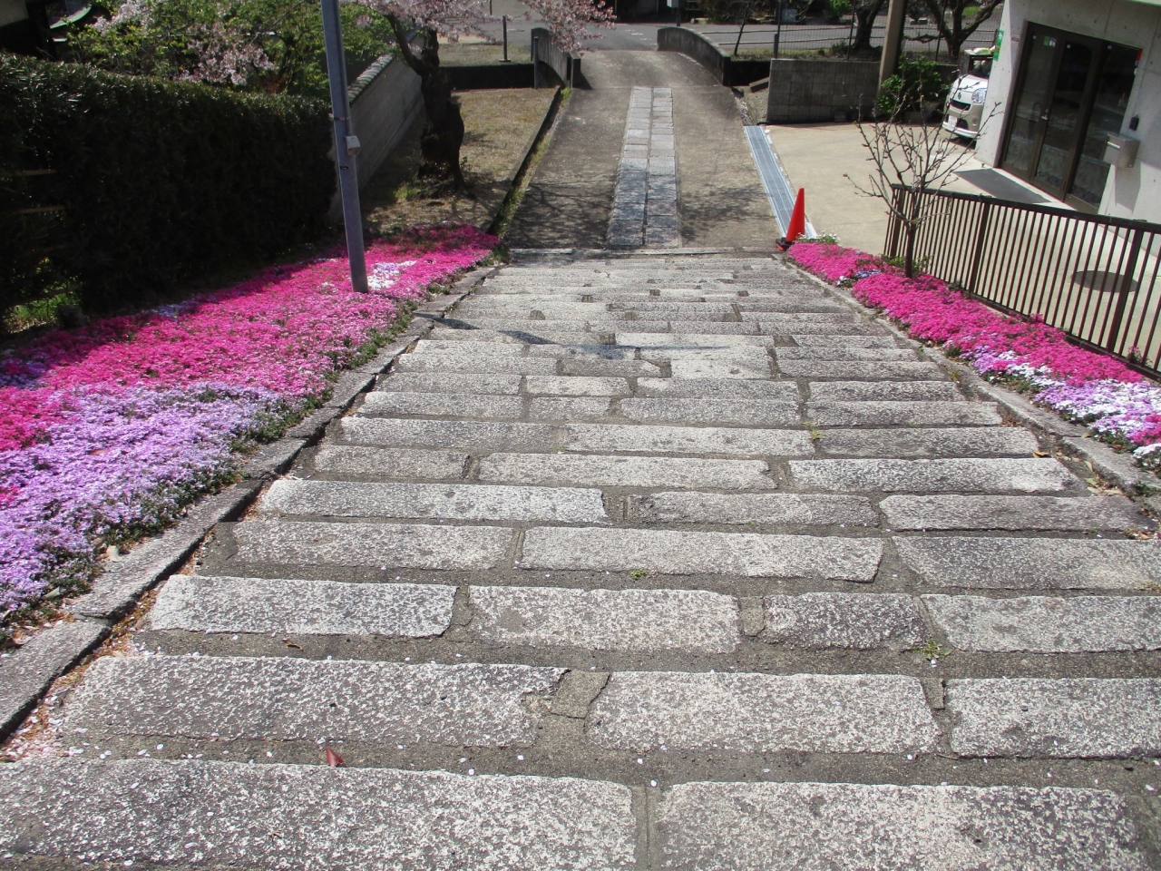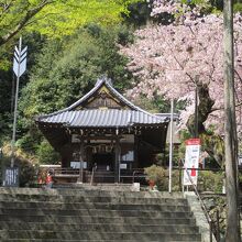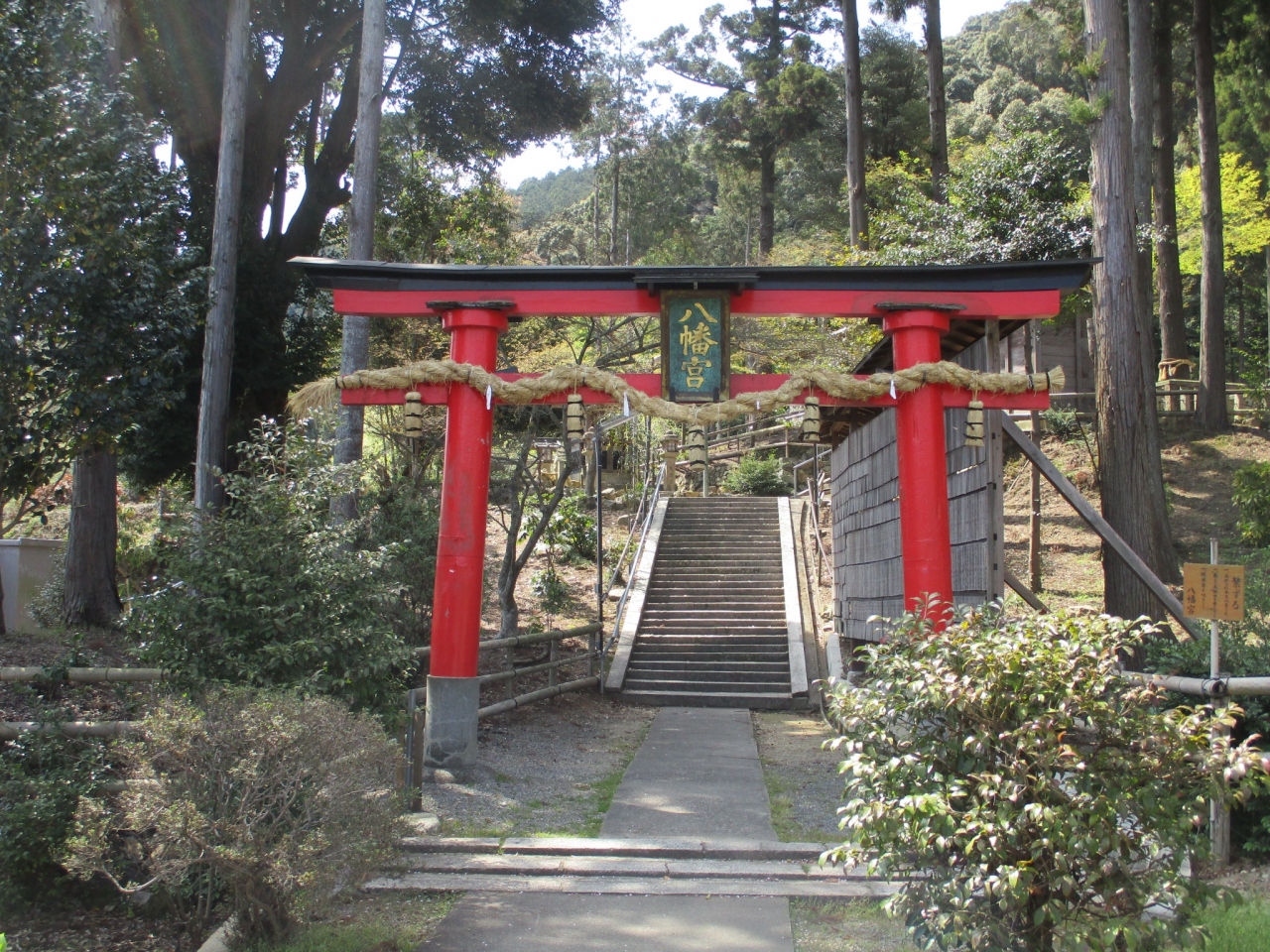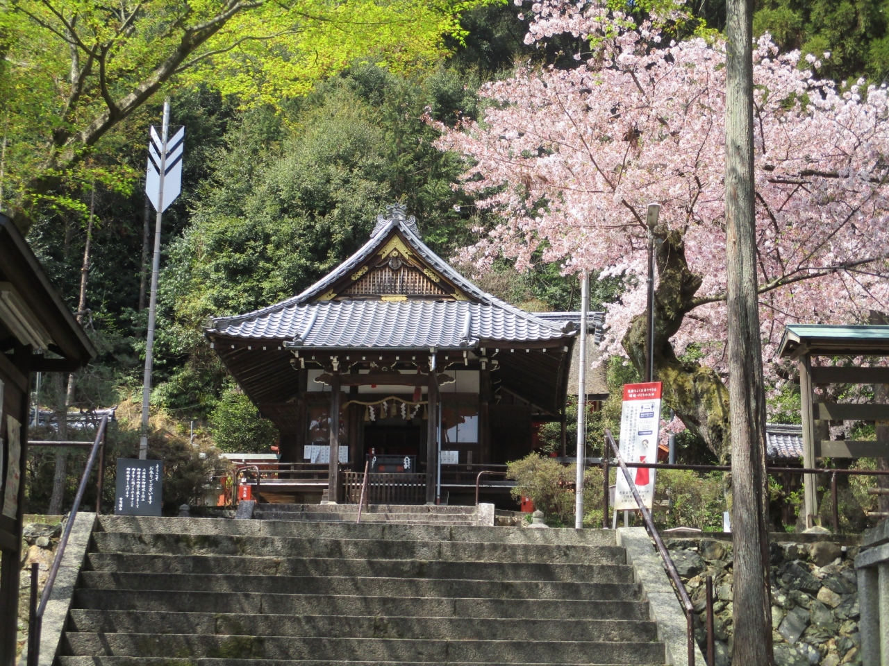 勧修寺の近くにある八幡宮です。途中、両脇にきれいな色のお花が植えられた石段を下りて、また小高い山を少しのぼったところにありました。赤い鳥居が目立っています。かつて神仏習合期には勧修寺の鎮守社として祀られていました。現在は地区の産土神として崇敬されています。のどかな雰囲気でした。