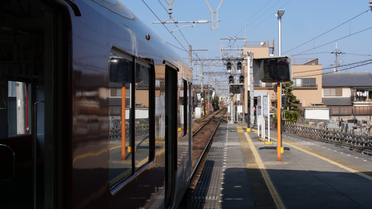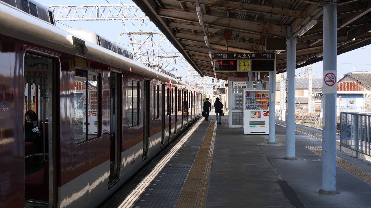 王寺との間を結ぶ近鉄田原本線の駅です。時刻表では近鉄田原本駅とは別の駅になっていますが、駅前広場は同じで乗り換えも容易な実質同一駅です。ただ、橿原線に比べて王子線の本数は少ないので、この駅ではしばらく電車を待たされました。