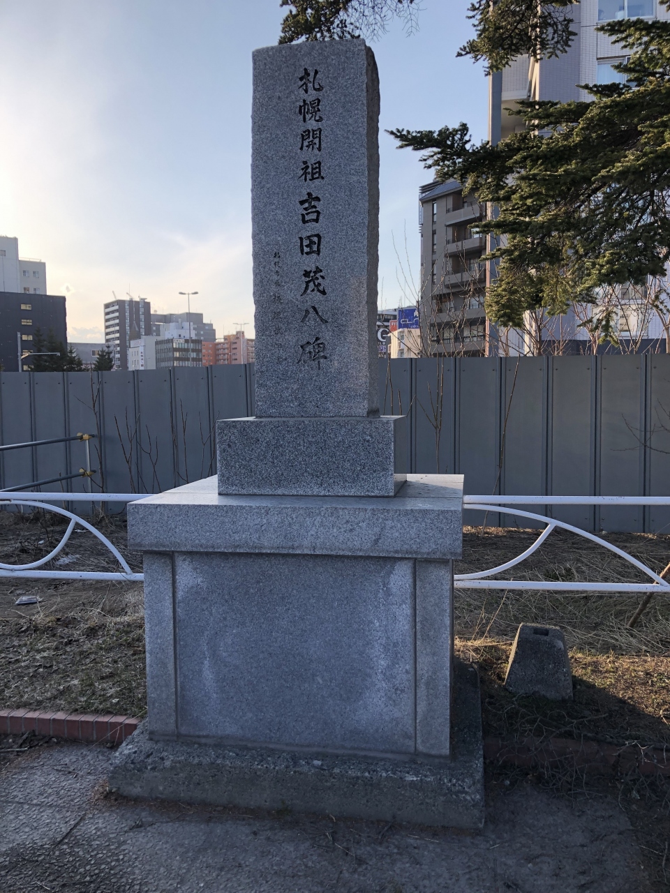 豊平橋の袂にある公園内に設置されていました。碑の裏側には説明が彫られているので、裏側も見ることをお勧めします。そちらを見て、吉田茂八氏が創成川の掘割を担い、札幌開拓の祖と言われる人物であることがわかりました。「吉田茂八ゆかりの地」として、「さっぽろ・ふるさと文化百選」にも選ばれていました。