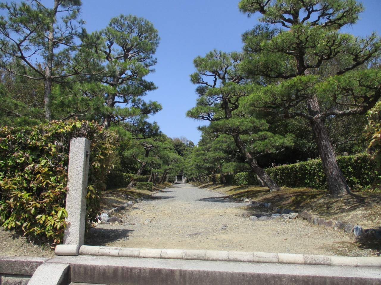 小野小町ゆかりのお寺、随心院の近くに醍醐天皇陵があります。少し道に迷いました。閑静な住宅地の中にありました。入り口に宮内庁管理の看板がありました。長い道の先に陵があります。醍醐天皇は第60代天皇、在位期間は寛平9年(897)から延長8年(930)です。