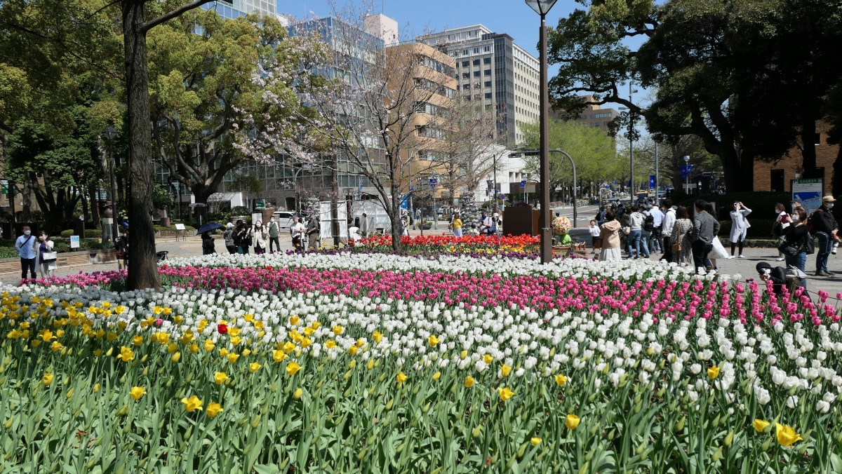 毎年4月上旬のチューリップが見事ですが、公園の一画は日本庭園になっており、紅葉がキレイです。