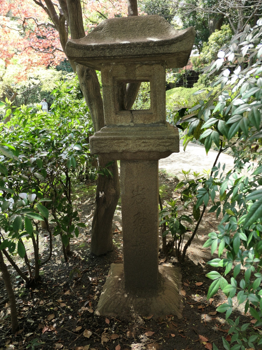 日本庭園の中には、珍しい水琴窟やかつての遊郭「岩亀楼」の石灯篭があります。