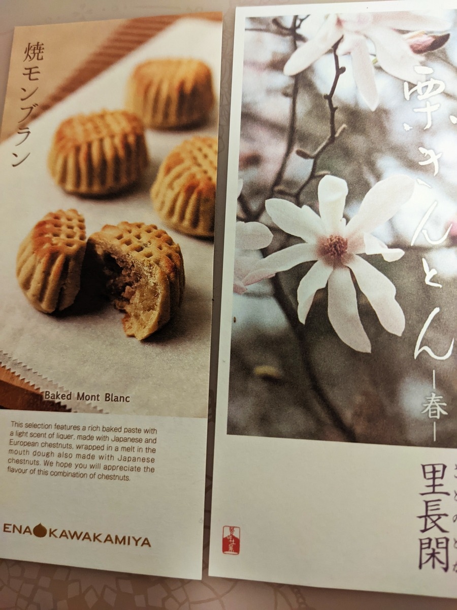 栗菓子の老舗の「焼きモンブラン」と「里長閑(さとのどか)」を買いました。