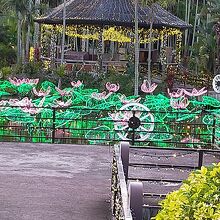 Hisのlealeaクーポンで昼と夜の入場券とハイビスカスティーがセットになってたので、イルミネーション目当てに行きました。昼は、熱帯植物があり、小動物ふれあいコーナーで遊べます。しかし、夜までが長く、出入り自由だったから、ホテルまで戻れば良かった。沖縄の日暮れが遅く、6時半過ぎに行かれる事をおすすめします。
