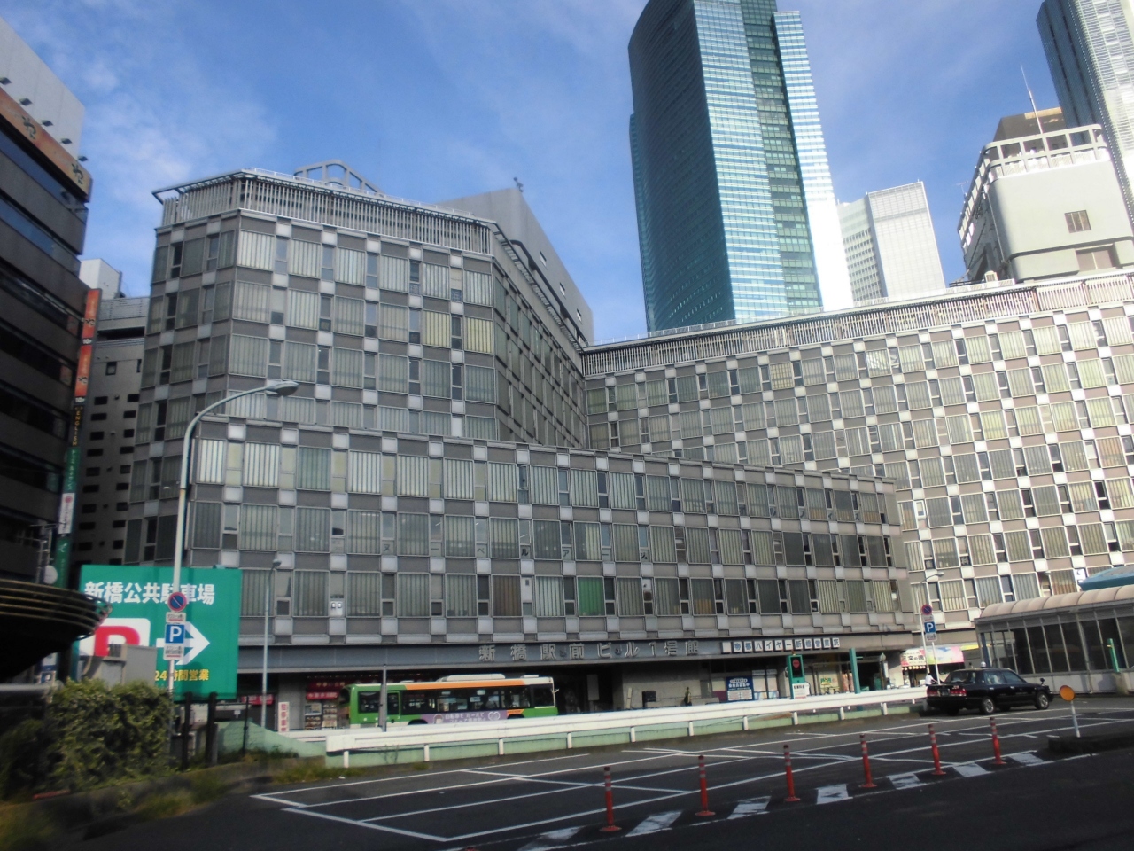 その名の通り新橋駅前にあります。このビルを一見してして思ったのは「昭和」ということ。うまく説明できませんが、昭和にできたビルと言うのはいろいろと分かる外観でした。ただ、形は珍しいので将来的には記念物になるのではと思います。
