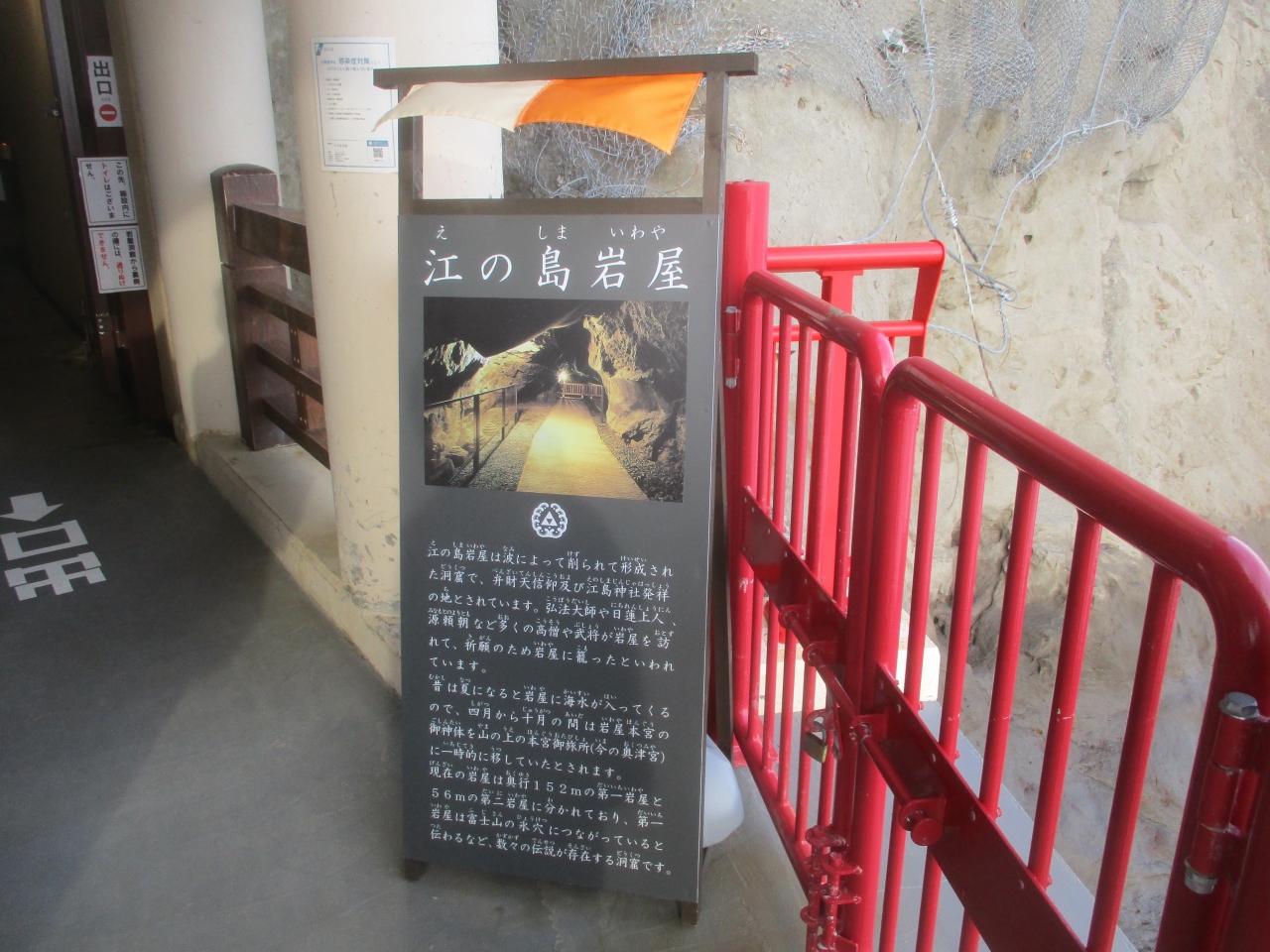 江の島岩屋は島のもっとも太平洋側に位置しています。洞窟内をろうそくを灯して中を歩くところがあったり、工夫は色々してありました。中に入る前の海側の眺望が素晴らしかったです。江の島駅側から歩いていくとかなり遠く階段が多いので、子供やお年寄りは移動が厳しいと思います。