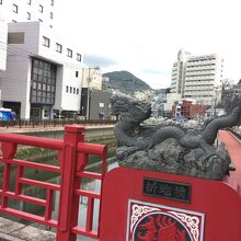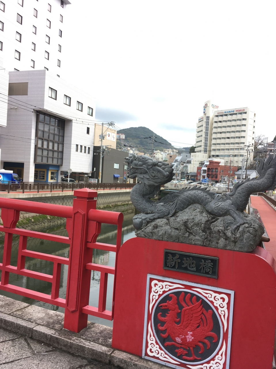 こちらの橋を渡ると中華街の北門(玄武門)がすぐです。ランタンフェスタの際はパレードの通り道にもなっていて、大変賑わうそうです。新地橋の四隅には、東西南北を司る四神(しじん)のプレートがあり、青龍、白虎、朱雀、玄武が見れました。