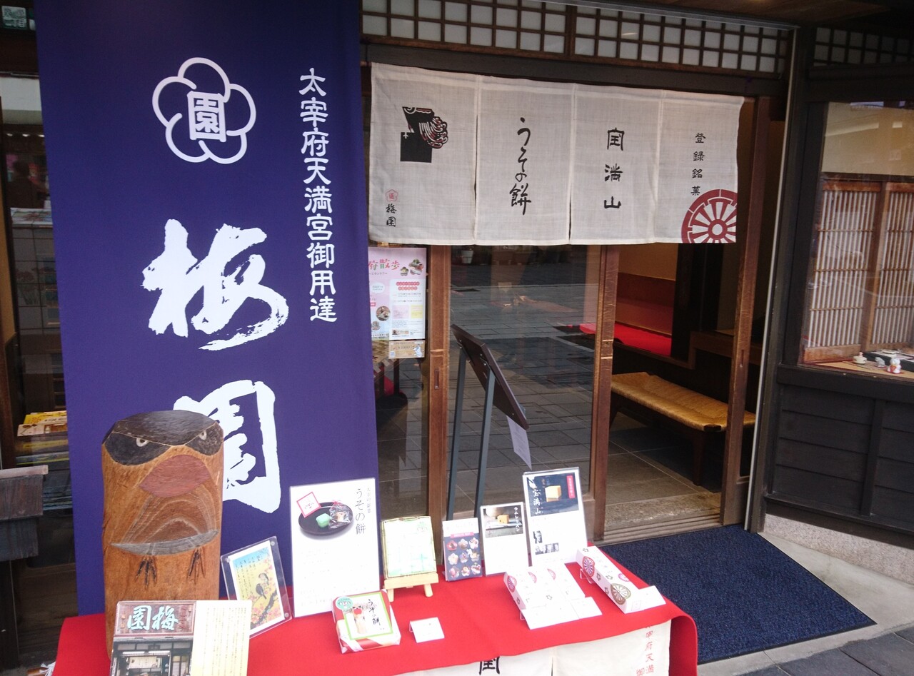 どこのお店も売りは梅ヶ枝餅ばかりだが、ここは自社で作られた和菓子類を販売している。特に和製プリンと呼ばれる不思議な食感な「宝満山」という和菓子は見た目もいい。卵 砂糖 寒天 水あめのみを使用したもので、ラムレーズン入りのものもある。