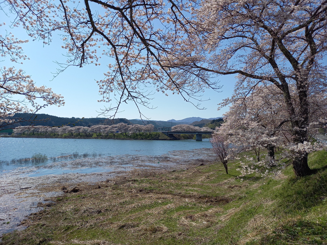サクラ満開でした。4月の17日に花山ダムの脇を通りましたが、サクラ見頃でした。特に北側のキャンプ場付近からダム上流に向かっての眺めが良かったです。初めてこの季節に行ってみましたが、天気もよく絶好の行楽日和でした。
