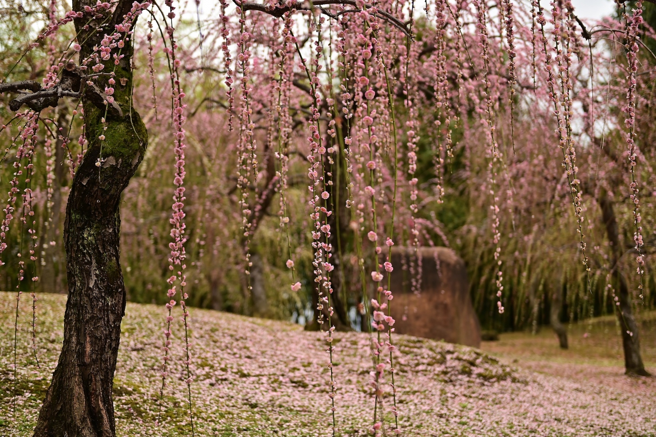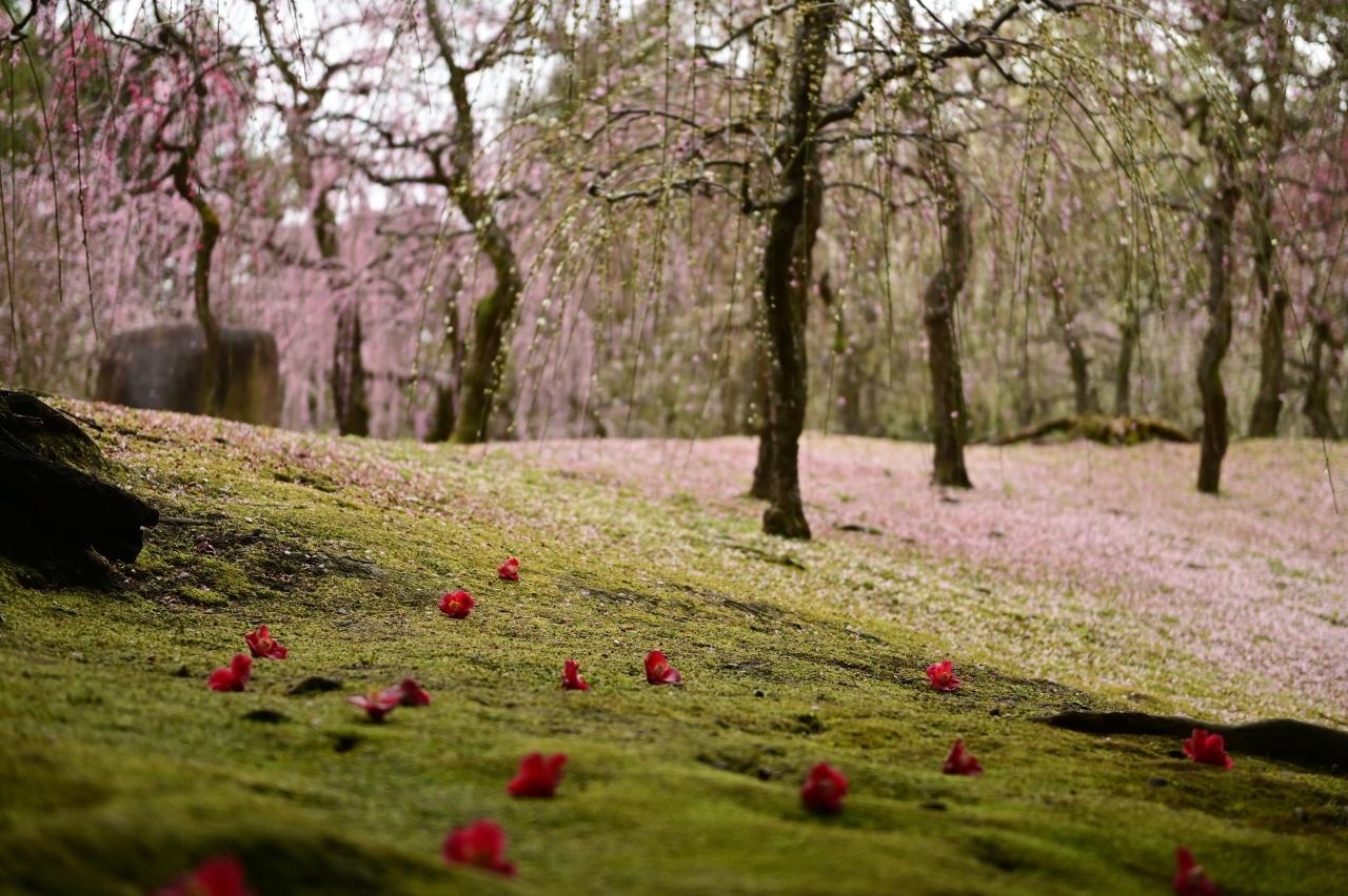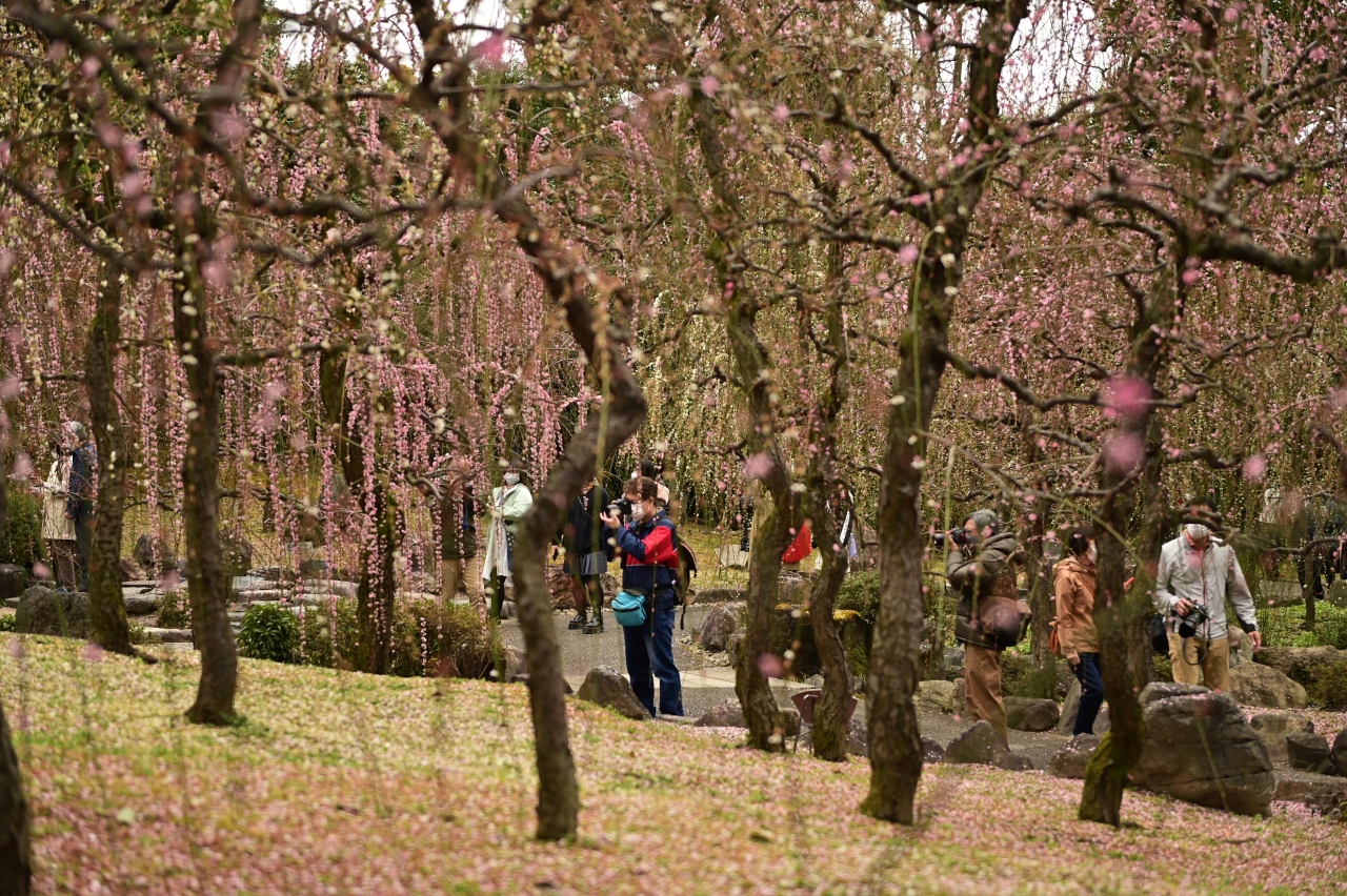 2022年3月19日に足を運んだ。「まつり」は3月21日までだったのでほぼ最終盤といっていい。さすがに枝垂れ梅は散り始めており、満開時に比べると少しさびしさはある。もう一週間ぐらい早い時期が満開だろう。ホームページで午前8時半ごろには駐車場が満車になるので注意と呼び掛けがあったが、実際は8時半で半分ぐらいだった。ただ、椿は息が長い花だけにこの時期でも見ごたえ十分だ。