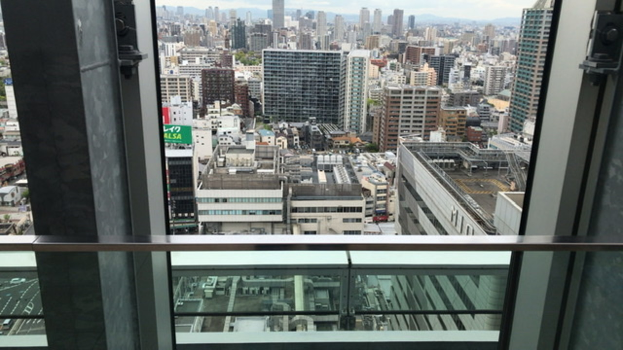 16階(美術館のフロア)までエレベーターで上がって、眼下の景色を楽しみました。