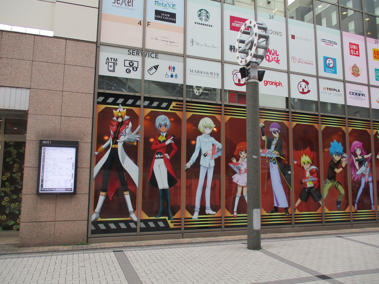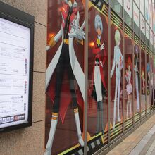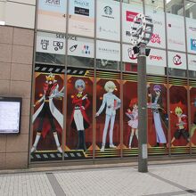 建物の外壁に大きなアニメキャラクターのパネルがありました