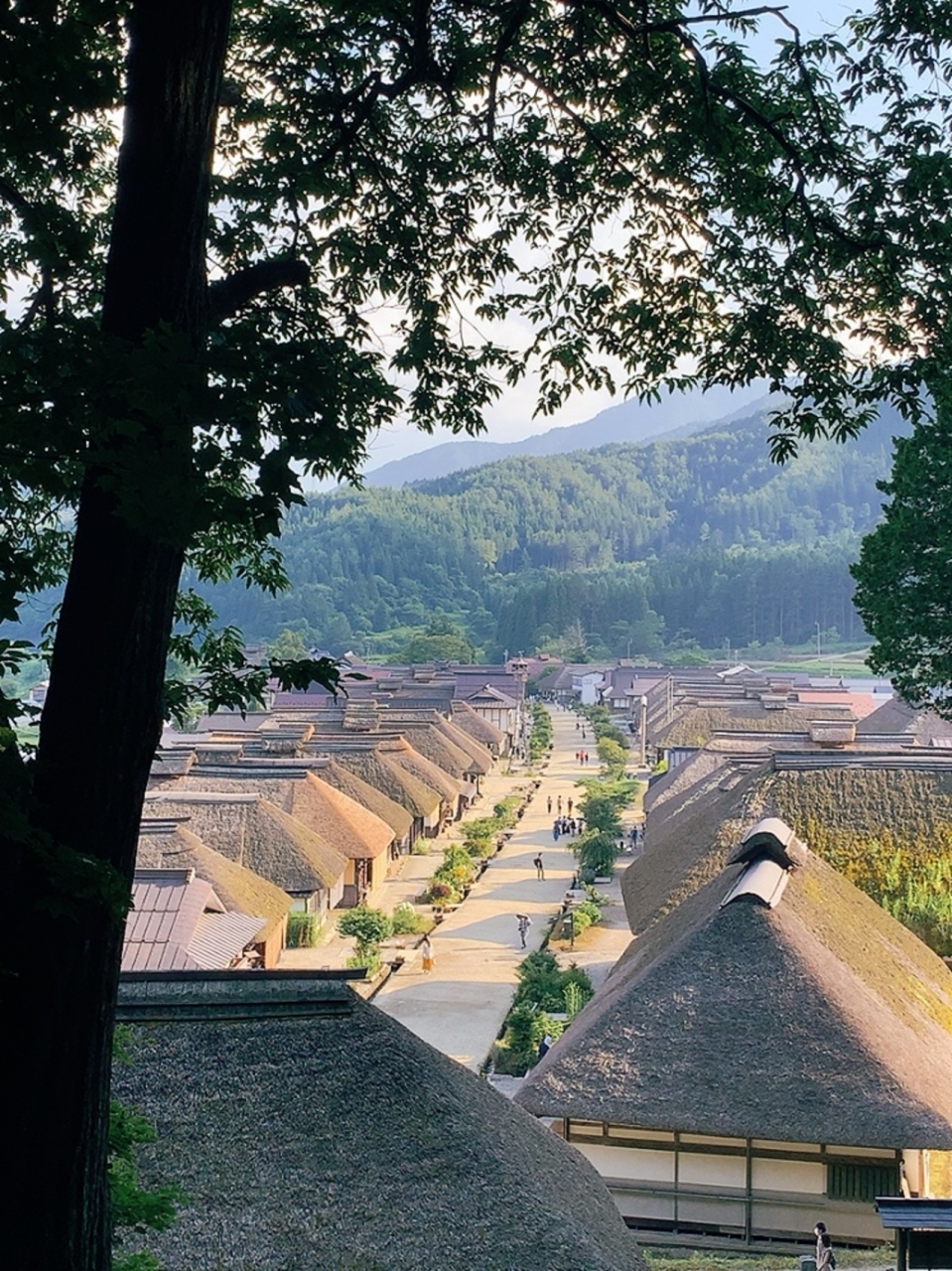 大内宿の1番奥まで歩いたところの、階段を上ると、展望台になっています。 茅葺き屋根の家々が並ぶ集落を、レトロな感じで映る撮影モードでもパチリ。 昔にタイムスリップした感がちょっと出ました。