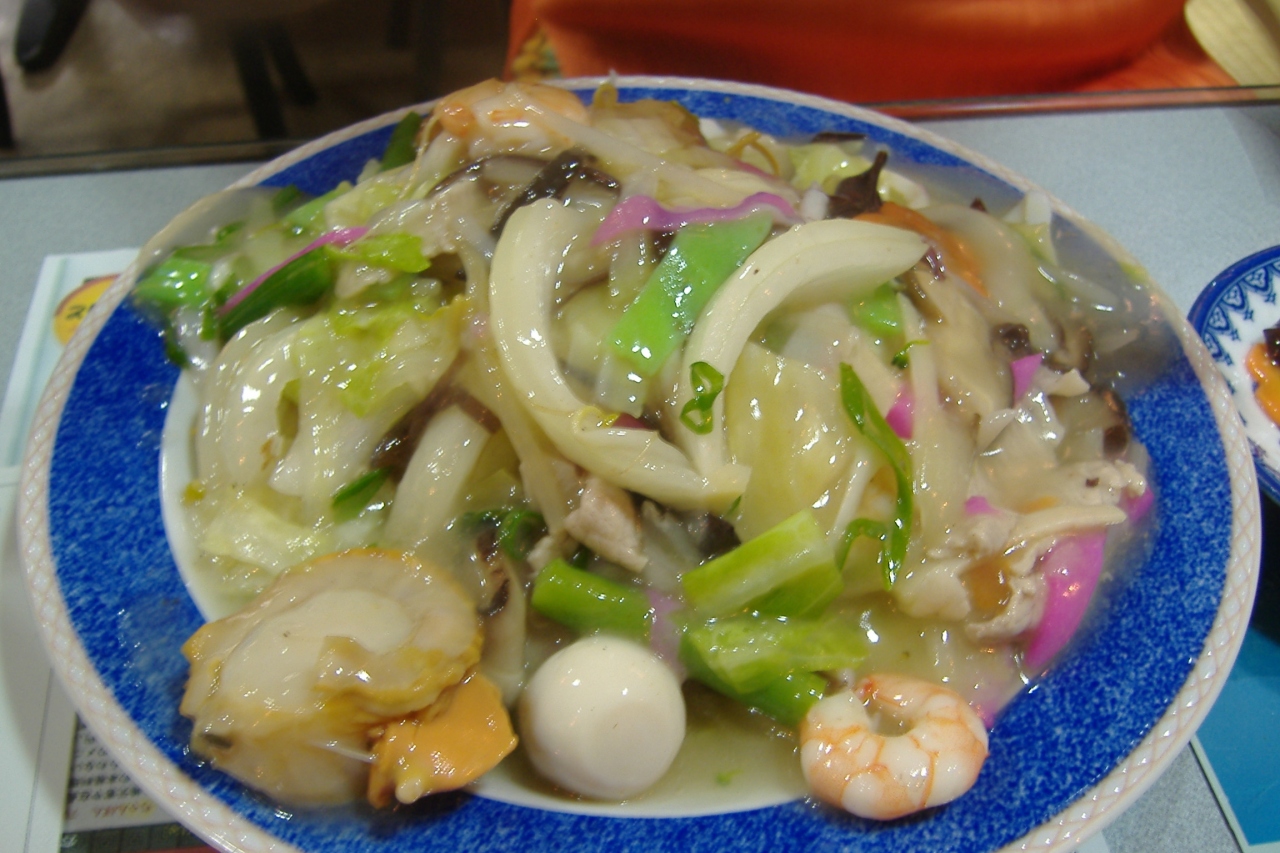 創業70年以上の歴史をもつ老舗の中華料理店で、長崎名物の特製ちゃんぽんと皿うどんを食べました。