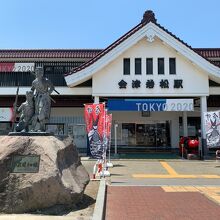 運行されている列車の本数は少ないですが、2013年の大河ドラマ「八重の桜」で会津若松が舞台になったという事もあり、その名残?で駅周辺はキレイに整備されているように感じます。 駅舎もカッコイイし、駅の時計も、漢数字で時間を示しています。