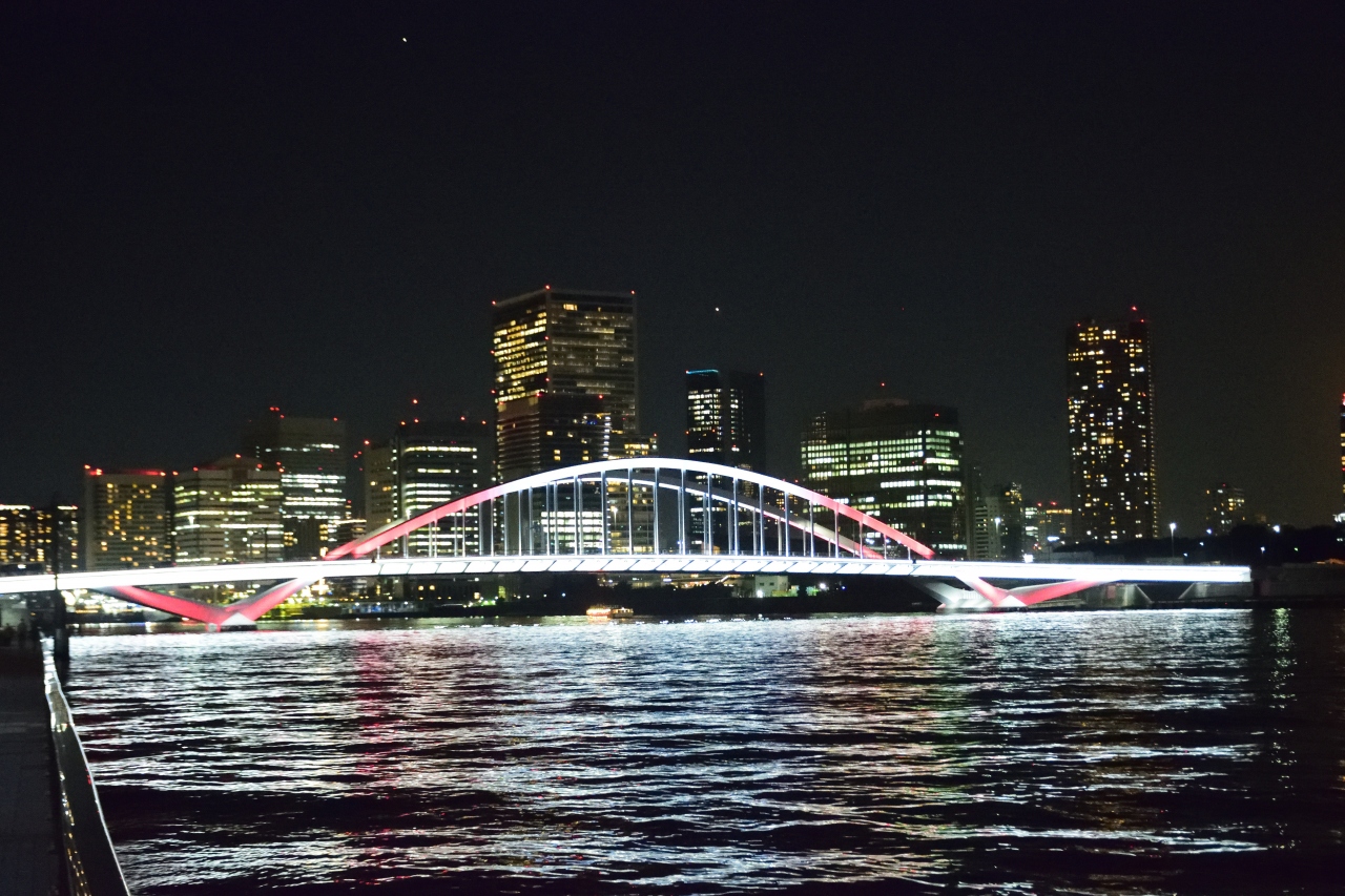 隅田川の河口に新たな第一番目となる橋梁のふさわしい姿を求めてデザインされたのが築地大橋です。隅田川に架かる他の橋同様に、単純に川を渡るだけでなく、地域にマッチした美しい姿を売りにしており、観光スポットにもなっています。夜にはライトアップされています。