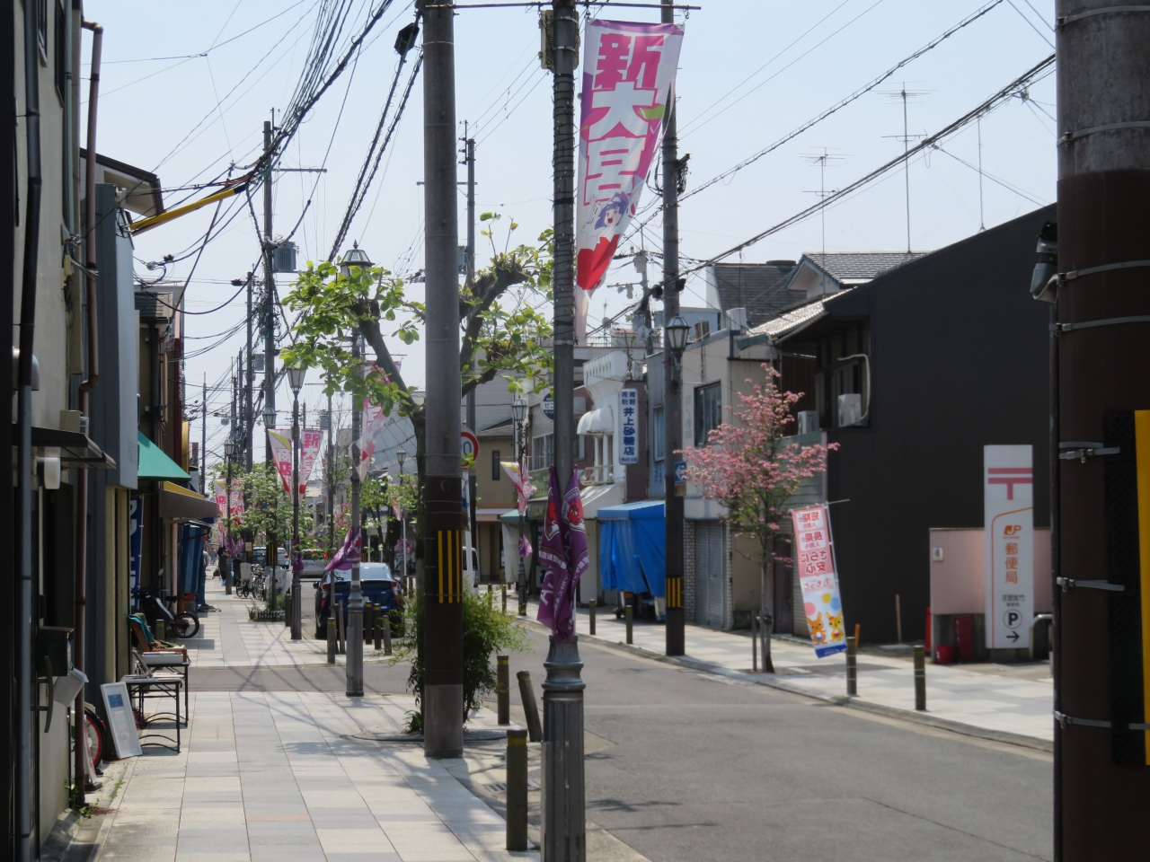 京都は大宮通の北大路から北山までの長い商店街です。アーケードはありませんが、歩道が広く歩きやすくなっています。