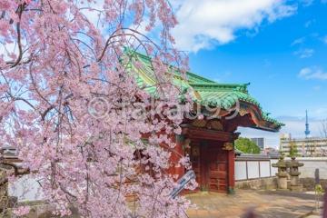 「厳有院霊廟勅額門」は江戸幕府4代将軍徳川家綱の霊廟建築です。重要文化財に指定されています。通り抜けは出来ませんが外(道路側)からと内(霊園側)から見学できます。勅額門脇の桜が満開でとてもきれいでした。
