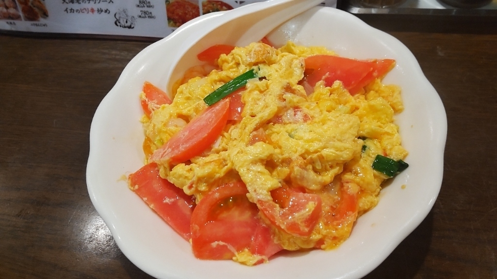 炒め物系の中から海老とトマトの玉子炒めをセレクトした。