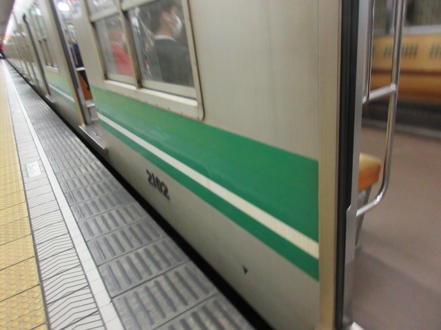 大阪メトロの路線の一つです。グリーンのラインの車体、グリーンがイメージカラーです。大阪住之江のコスモスクエア駅から東大阪市の長田駅までを結ぶ路線です。私は本町周辺で利用しました。休日の夜でしたがまあまあ混んでいました。
