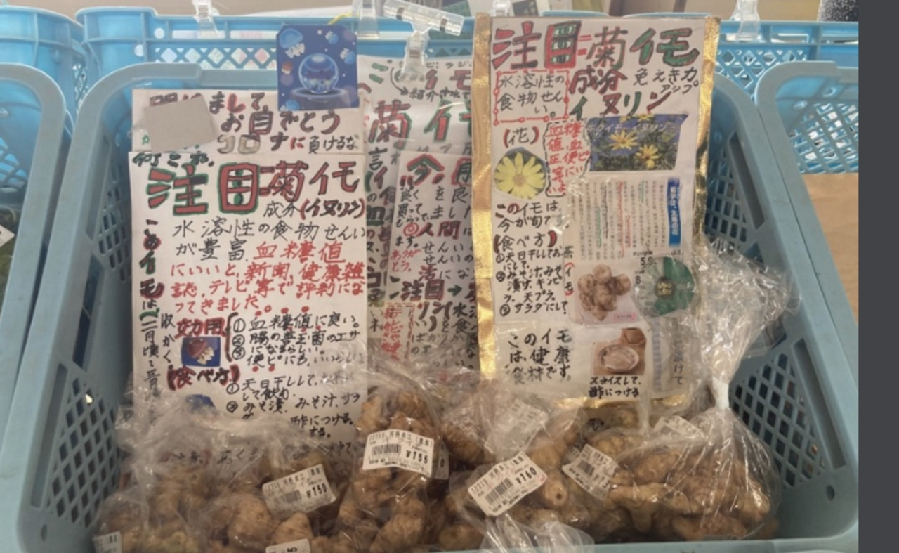 二見町にあるみんわの駅蘇民さん。地場産の魚介類や農作物など、お土産物や植物も販売しています。体に良いとされる菊芋も100円台で売っていました。また地元では作られたあんこなども売っていて興味をそそられました。
