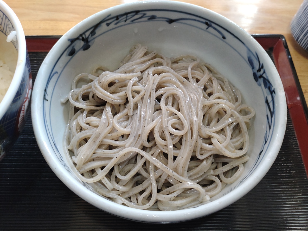 オーダー後5分位で到着した天丼と蕎麦のセットは見た目、それぞれ一人前ずつありそう。まず蕎麦は、北海道産の蕎麦粉を使った二八そばで、コシがあり、喉越しが良い。立ち食いそばのそばに食べ慣れると少し硬く感じるかもしれない。出汁は焼津から直送したカツオを使っており、深みのある味。天丼は、さすがに少しご飯は控えめのようですが、海老天2本、舞茸天、大葉天が入っており、かなりのボリューム。天つゆは少し控えめでしたが、揚げたての天丼は美味。ちなみに、もり丼は、天ぷらそばともりそばがセットになったものとのこと。「蕎麦☓蕎麦」の他では見たことのないセットかと。