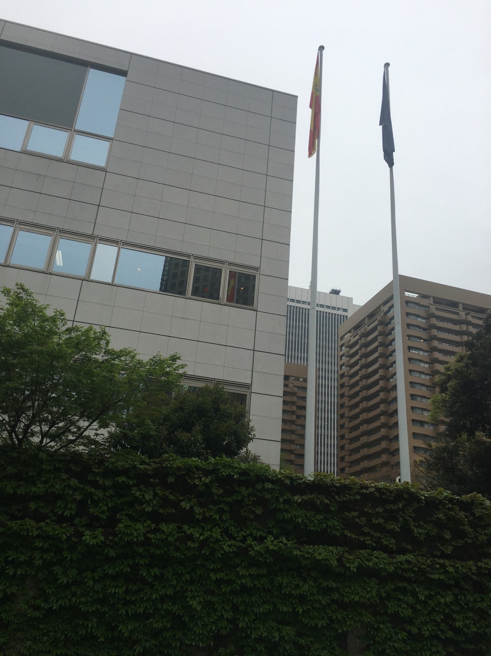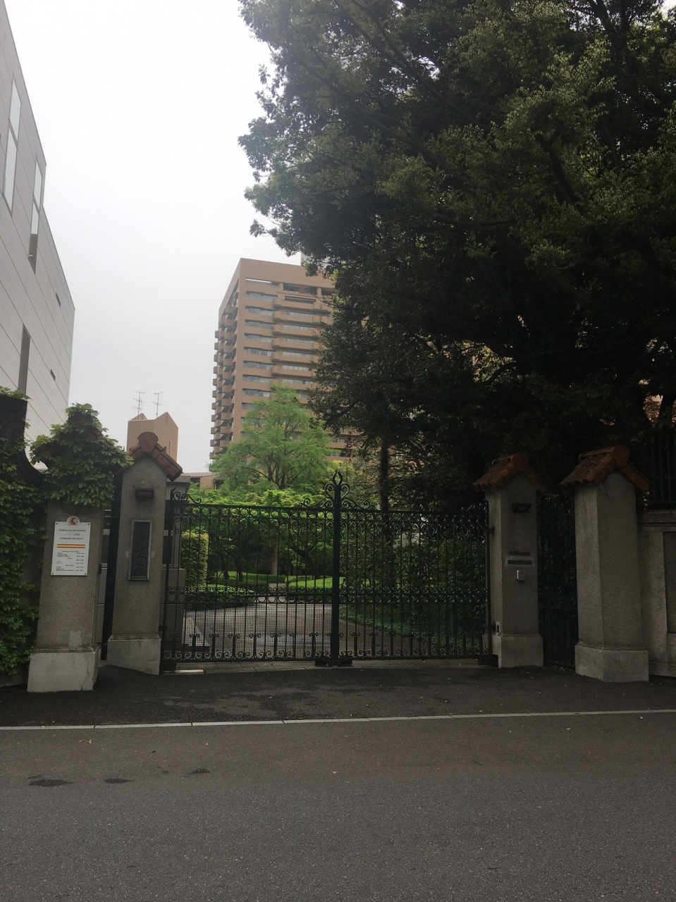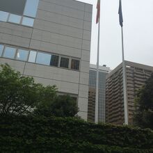敷地内には入れないので外側からの見学です。スェーデン大使館の前にあり、高い囲いで囲まれ、木々で覆ってる場所もありました。建物前の国旗が良い感じで、庭の緑が鮮やかでした。高いマンションに囲まれている場所にあります。