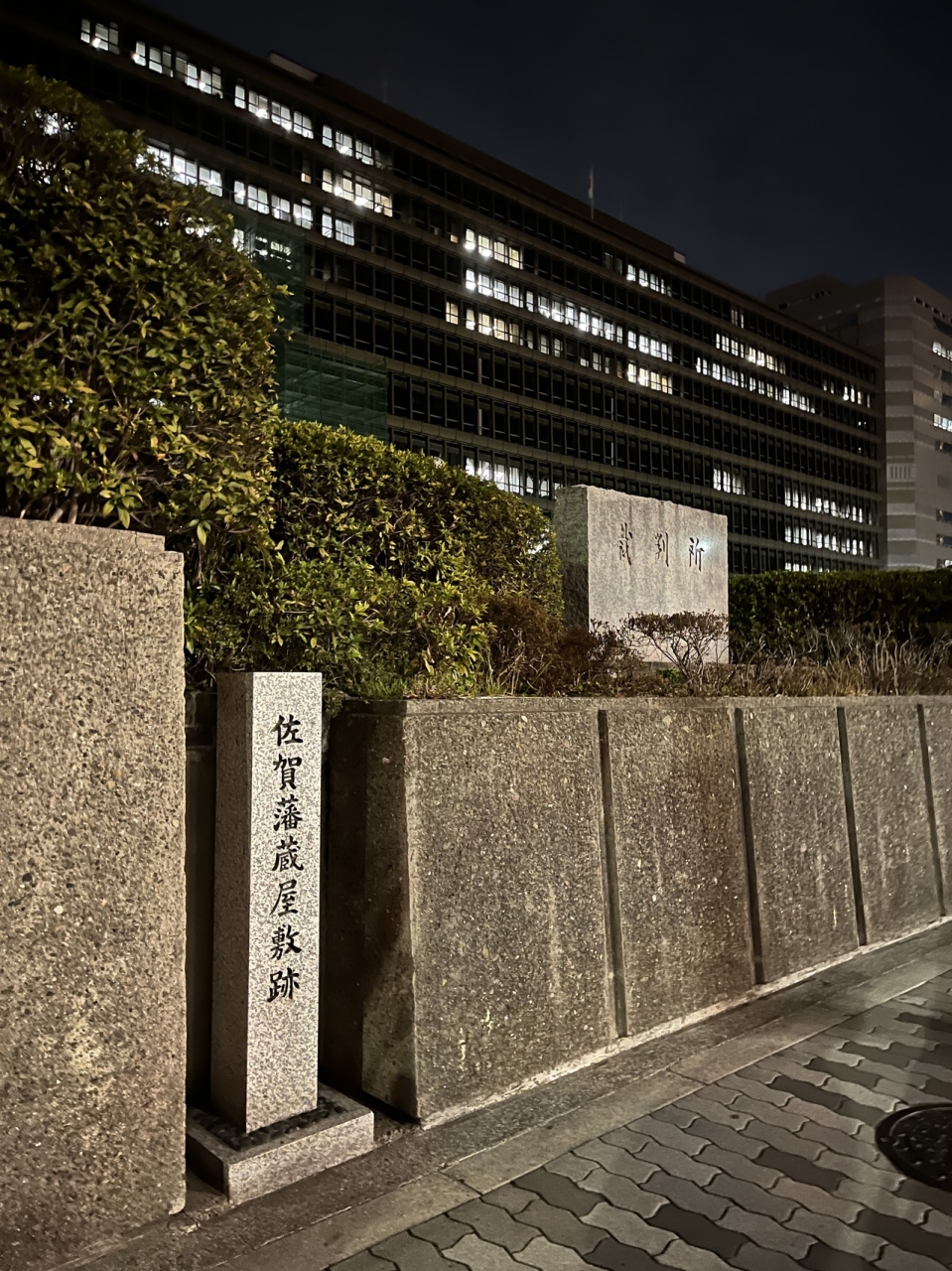 大阪市内中心部を流れる堂島川沿いは歴史的にも水都・大阪を象徴しており、堂島川周辺にはいくつもの歴史的スポットが残されています。堂島川沿いには各藩の藩邸があったそうで、各藩からこちらを経由して江戸へと参勤交代に向かったそうです。佐賀藩の屋敷跡は地方裁判所になっており、石碑だけが残されています。