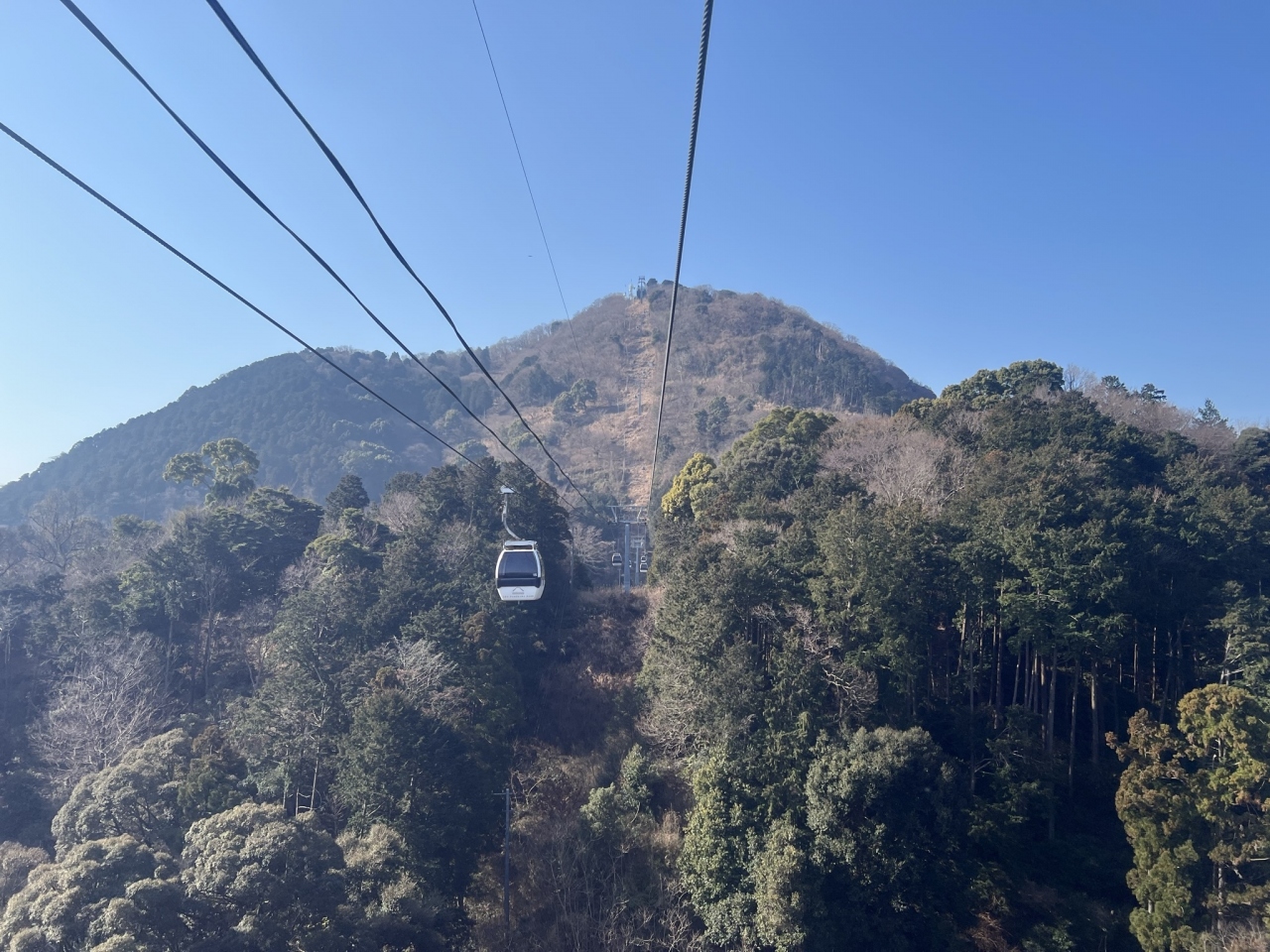 ショップやカフェのある山麓駅から葛城山の山頂駅まで、約7分で運んでくれるロープウェイ。片道1200円、往復2400円で手軽に山頂にアクセスすることができます。標高452mの山なので、片道のチケットを買って、帰りはハイキングコースを歩いて降りることもできます。