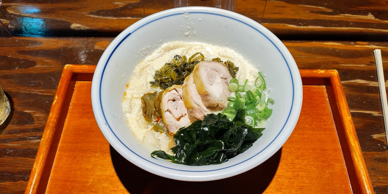豆乳ごまうどんをオーダー。ほっこりやさしいお味で冬にぴったり。