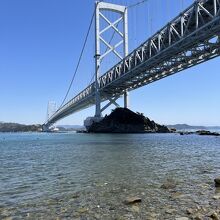 相ヶ浜には千畳敷展望台の脇にある散策路から降りていくことができます。砂浜のビーチではなく、岩場で足場は悪かったですが、水は透明度が高く、とてもきれいでした。真上に大鳴門橋を見ることができ、迫力のある光景でした。水面に近いので、渦潮は泡が立っているなというのが分かるくらいです。渦潮は渦の道や観測船から観るのが良いと思います。