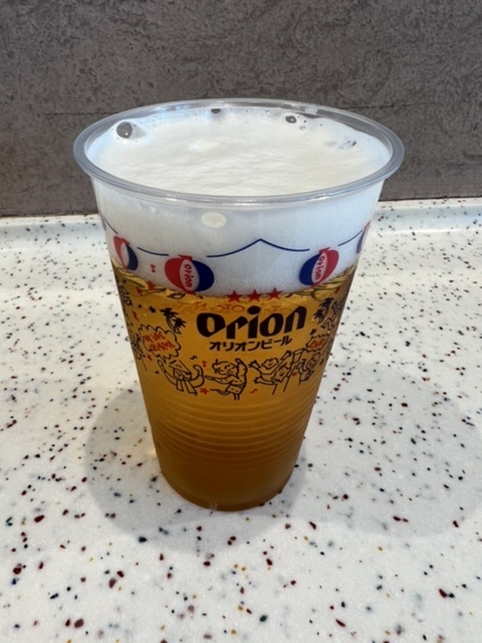 先ずはオリオン生ビール!そして沖縄そば820円。使い捨て容器はイマイチですが味はまあまあでした。