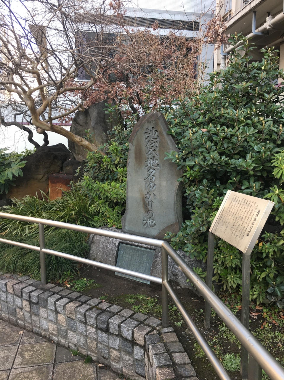 小さな元池袋史跡公園内にありました。昔は周辺にたくさんの池があったとのことですが現在は池はなく、石が固まった場所から水が漏れているような場所があるのみでした。石碑もあり、地名の由来を記載した看板もありました。