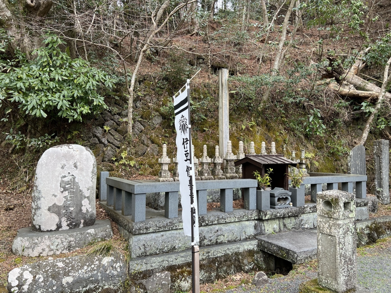 修善寺温泉の中心部(独鈷の湯公園)から、背後にある鹿山を少し上った所にある広場が源氏公園、その一角に十三士の墓があります。修禅寺に幽閉され、その後暗殺された源頼家、その家臣が謀反を企てたものの挙兵前に発覚し、幕府によって討ち取られたと吾妻鏡に記されています。ただ、吾妻鏡には、その家臣が13人であったという記載はありません。